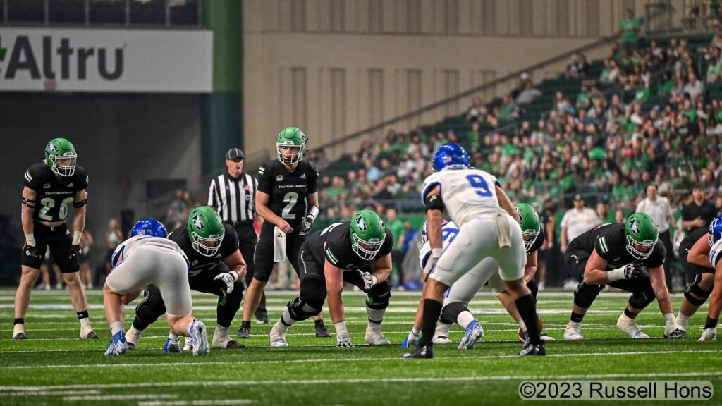 The Fighting Hawks offense started slow but finished extremely fast in putting up a whopping 55 points. The Danny Freund-led offense gave the Alerus Center crowd plenty to cheer about on Saturday.