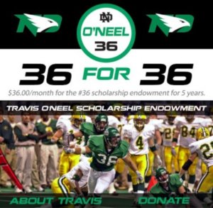 This is an outstanding way to support UND football and honor the memory of Travis O’Neel at the same time. The ND Champions Club is handling the endowment and will be the contact to sign up!