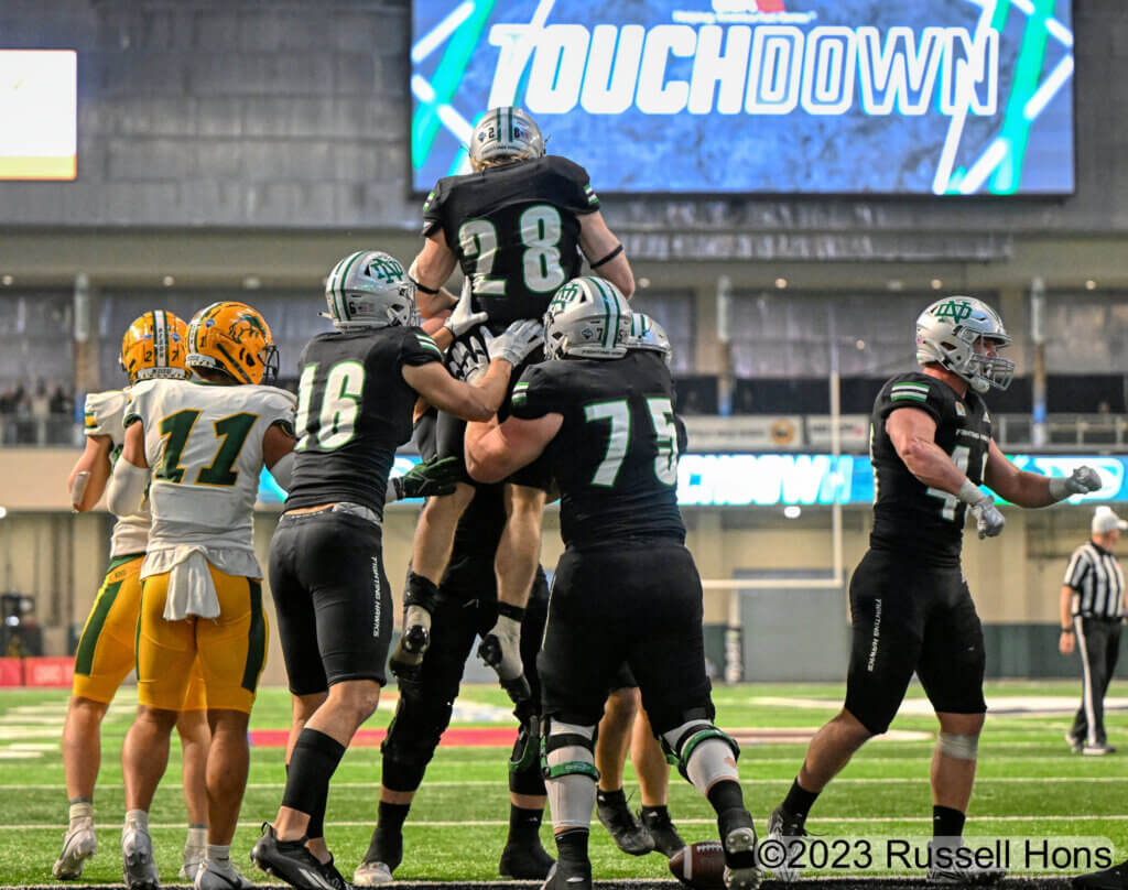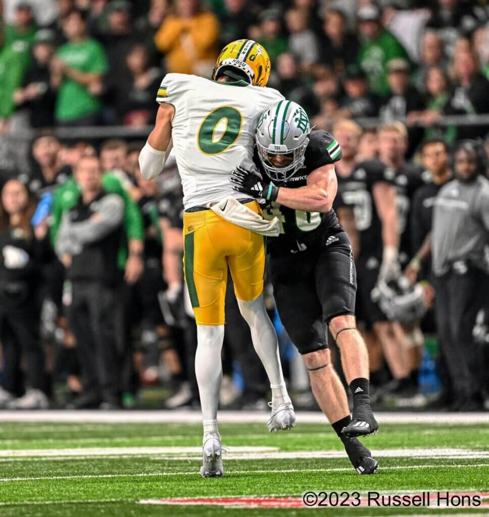 The UND defense battled their ass off all game. Much like they did in 2021, they slowed down the Bison rushing game greatly, forcing them to throw for their yardage this time. The defensive line did their job and allowed the inside linebackers to fly around. Not super flashy but definitely effective. Tackling was very good in this one – sure, definitive tackling.