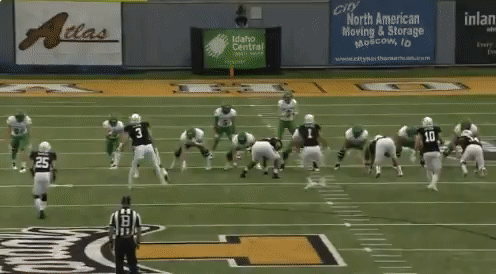 The Vandals added a wrinkle on defense that we have not seen yet this year vs. UND. On the toss play that the Hawks love to run the Vandals would run a safety up into the box to the wide side of the field and blitz him off the edge. It prematurely cut off the path of Oliveira/Johannesson making them cut it up sooner than they wanted, which didn’t allow for the blocking to get setup. If the toss went to the boundary it may have had greater success at times, not 100% sure, though.